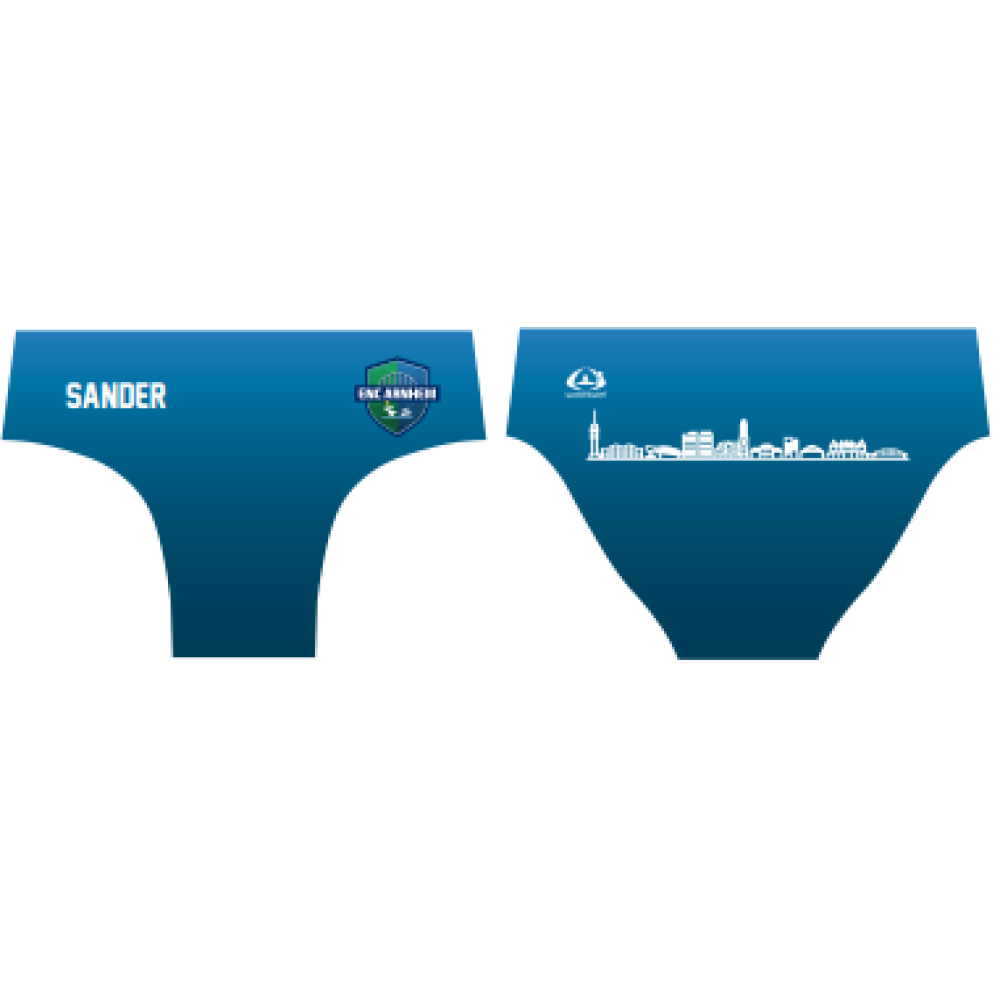 De Waterswim waterpolozwembroek is speciaal ontwikkeld voor de professionele waterpolospeler. Vele spelers van top waterpolo clubs in Europa dragen deze uitgebalanceerde Waterswim waterpolozwembroek tijdens trainingen en wedstrijden. Deze zwembroek is dubbel gevoerd en gemaakt van zeer hoogwaardige Italiaanse zwemstof, waardoor hij bijzonder sterk en zeer moeilijk vast te grijpen is. Het koordje is gemaakt van extra stevig en elastisch materiaal waardoor het makkelijk te strikken is en bovendien niet eenvoudig opengaat tijdens wedstrijden. De Waterswim Waterpolo zwembroek is niet te hoog, maar gemiddeld gesneden, waardoor mooie en comfortabele pasvorm voor een ieder. Volledig custommade in de ENC huisstijl.